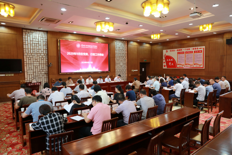 9月15日,学校召开党务、行政工作例会,进一步推动督查2020年学校重点工作。全体校领导出席会议,会议由党委副书记毛伯民主持。