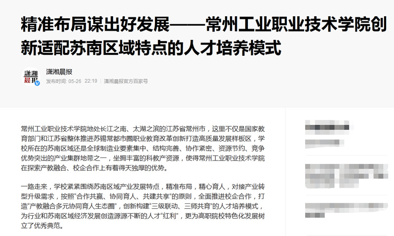 潇湘晨报-精准布局谋出好发展——常州工业职业技术学院创新适配苏南区域特点的人才培养模式