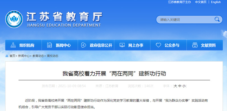 江苏省教育厅-我省高校着力开展“两在两同”建新功行动