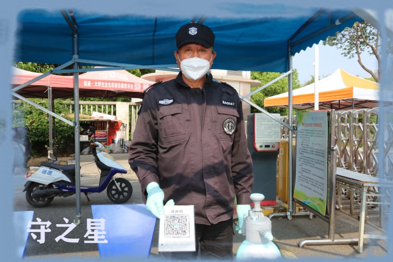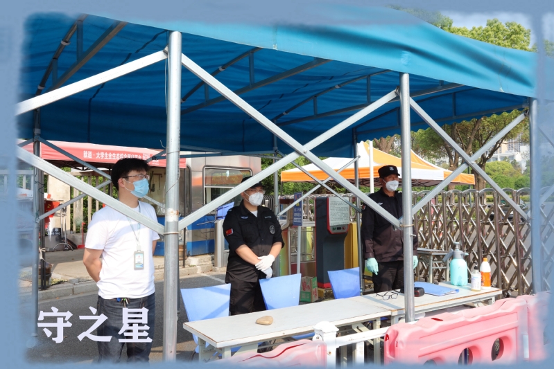 天刚破晓,同学们或许还未从睡梦中苏醒,但清晨的阳光下却立着一个个笔挺的身影。他们轮流值守着学校最关键的卡口,不敢在这关键时刻有一丝一毫懈怠。“保安”两个字虽然简单,几笔便能书写,但是,保证全校学生的安全并不是一件简单的事情。检查“两码”,测量体温,将闸门一遍遍开启、关闭……尽心尽职是他们最为真实的写照。他们是校园里的一颗颗“守之星”。