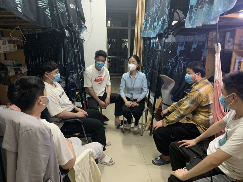 疫情封校后,张静文一直通过组织活动、主题班会、微信公众号推文等方式来给学生提供解放天性、释放情绪的途径。但长期处在密闭压抑的空间内,以及同宿舍学生作息时间混乱,学生群体中极易出现各种各样的心理问题。张静文通过每日精准摸排学生相关情况,及时快捷上报各类信息,经常下公寓或通过电话、微信了解心理异常、情感纠结、家庭经济困难等特殊学生情况,并及时予以疏导。遇到情况复杂的学生,张静文更是通过各种途径对他们进行心灵救助,预约心理咨询师,带他们前往专科医院问诊评估。