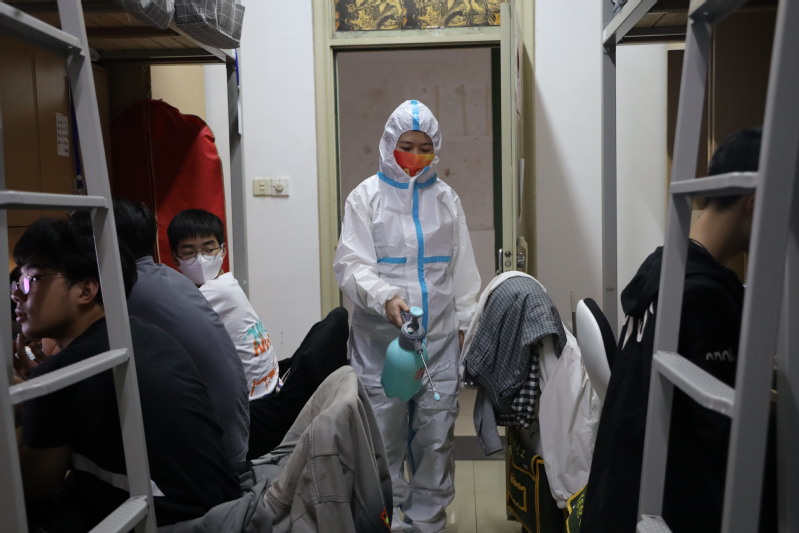 在封校期间,学生会遇到各种各样的问题,针对这种情况,赵娜娜总是不厌其烦地叮嘱学生,遇到任何问题一定要在第一时间联系她。为更好地服务学生,赵娜娜积极深入学生宿舍,耐心倾听学生诉求,提醒学生按时休息、宿舍经常通风、及时处理生活垃圾,防止春季多病共发的情况出现;她督促大家按时上课,并经常组织开展多样化的线上、线下相结合的思想政治教育活动来缓解学生的疫情焦虑。为了督促大家按时填报“抗疫小卫士”,赵娜娜每天起床的第一件事就是发布“抗疫小卫士”填报通知,提醒学生认真填报,准确反映自己的身体状况。针对没有及时填报的同学,赵娜娜会一一通过电话了解、督促,确保“抗疫小卫士”填报工作准确、及时。为保证学生核酸检测工作的有序进行,赵娜娜每次都坚持到现场维持秩序,并不厌其烦地提醒学生保持安全距离,确保核酸检测的每个环节都能有条不紊。