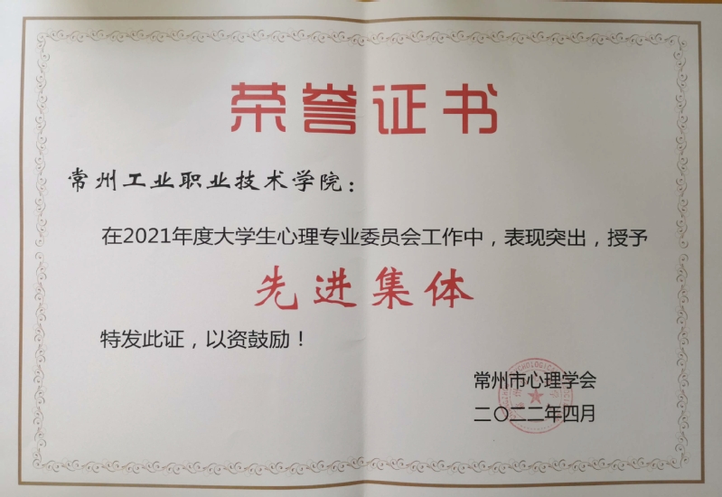 近日,在常州市心理学会开展的心理健康教育工作评比中,我校被评为2021年度心理健康教育工作先进集体,截至目前,我校已连续三年获此荣誉。