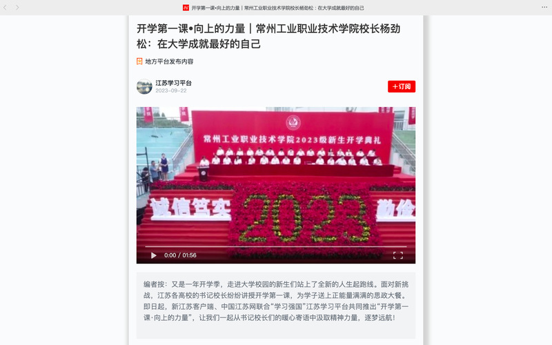 学习强国:开学第一课•向上的力量︱常州工业职业技术学院校长杨劲松:在大学成就最好的自己