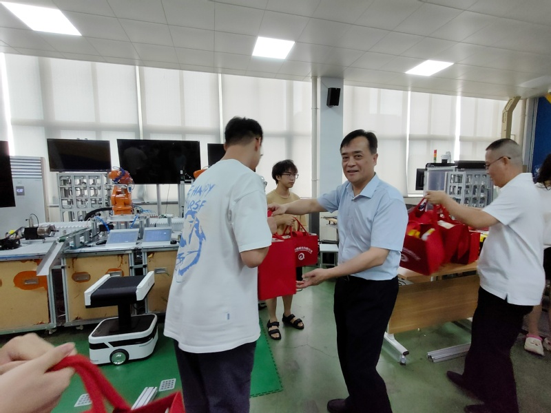 杨劲松勉励师生:“大家承载着学校提升内涵、服务区域发展的重任。要将备赛过程视为锻造‘双师’素养、淬炼高技能人才的宝贵机遇,以追求卓越的韧劲,在省级、世界级赛场上充分展现我校育人成效与改革成果,为‘双高’建设贡献力量!”校领导充满期许的话语,极大激发了师生斗志,他们将精心准备的防暑降温物资送到师生手中,传递组织的温暖。