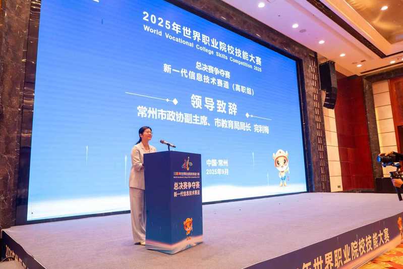 常州市政协副主席、市教育局局长完利梅致辞。她表示,此次大赛在常州的举办,既是对常州市持续推进产教深度融合实践的高度认可,也必将进一步提升“技能常州”品牌国际影响力,拓展职业教育对外合作空间,为常州乃至长三角区域高质量发展注入新的强劲动能。