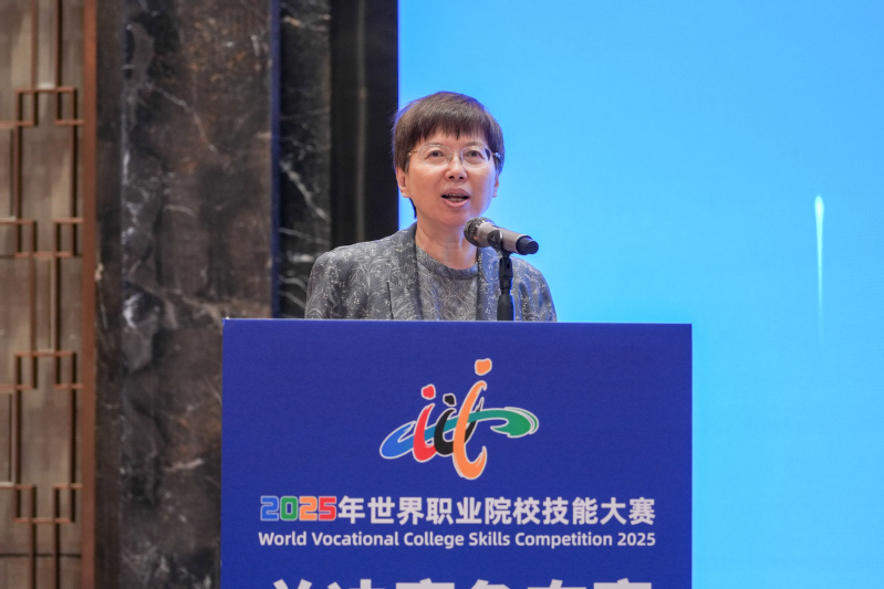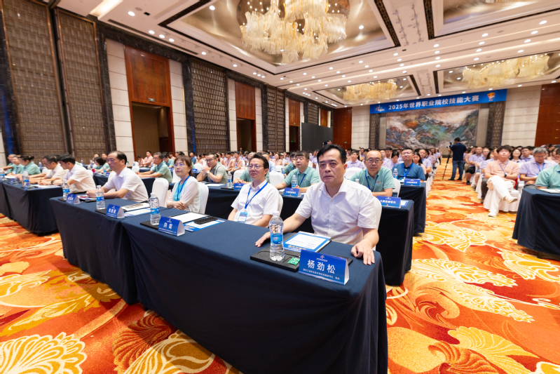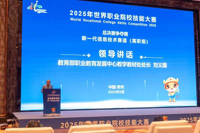 教育部职业教育发展中心教学教材处处长刘义国代表大赛组委会致辞。他指出,本届大赛实现了一系列重要创新与突破,致力于为全球产业发展输送能够适应新技术、新业态、新模式要求的复合型技术技能人才。