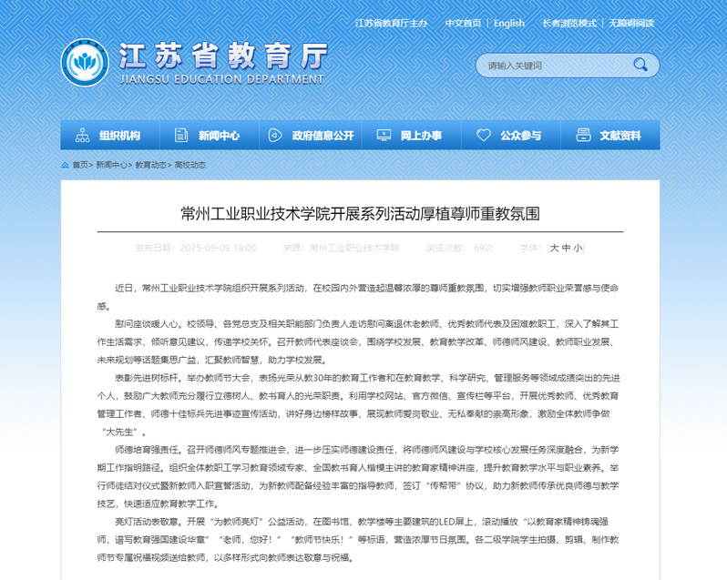 江苏省教育厅:常州工业职业技术学院开展系列活动厚植尊师重教氛围