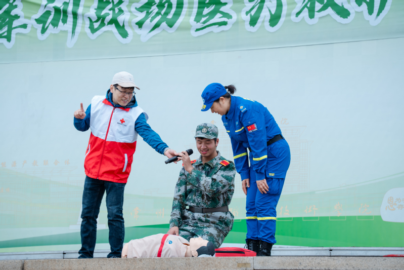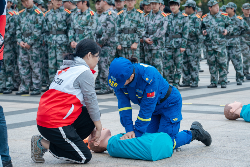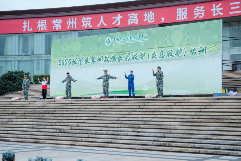 10月21日,我校组织开展2025级学生军训战场医疗救护(应急救护)系列培训。本次培训邀请常州市蓝天救援队和常州市红十字会共同组织实施,2025级全体军训学员参加培训活动。大会由学生工作部(处)、人民武装部副部长王娅霜主持。