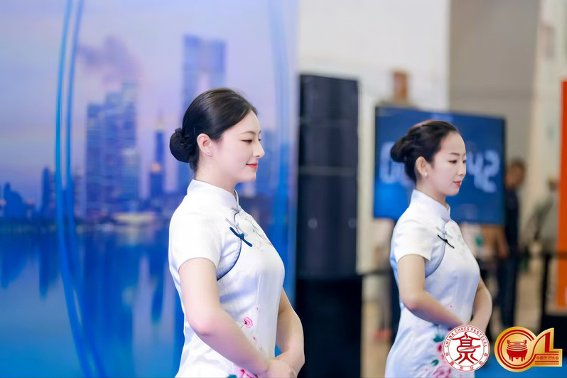 本次大赛以团队赛为主,参赛团队由1名宴会定制服务师、1名宴会服务人员和2名礼仪展示人员组成,各岗位分工明确、紧密配合,共同完成竞赛任务。顾昕作为本次大赛的礼仪展示人员之一,与团队伙伴配合默契,在规定时间内完成高标准礼仪展示,身姿优雅、动作规范,既彰显了餐饮行业服务礼仪的专业度,又生动诠释了中国礼仪之美。