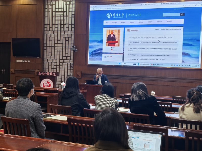 10月22日,我校举办2026年度国家社科基金项目申报辅导讲座,扬州大学秦兴方教授应邀作报告。副校长檀祝平出席会议,会议由产学研合作处处长褚守云主持。
