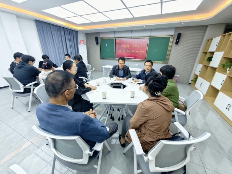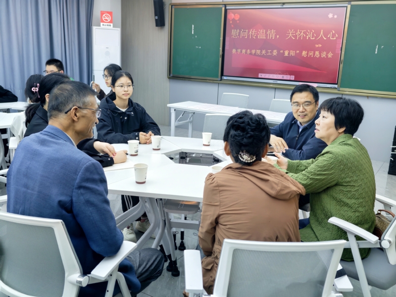 10月31日,数字商务学院在“一站式”学生社区举办了以“慰问传温情,关怀沁人心”为主题的关工委慰问恳谈会。数字商务学院关工委老同志杨海清、盛天能、谢飞,学院党政班子全体成员共同与会。