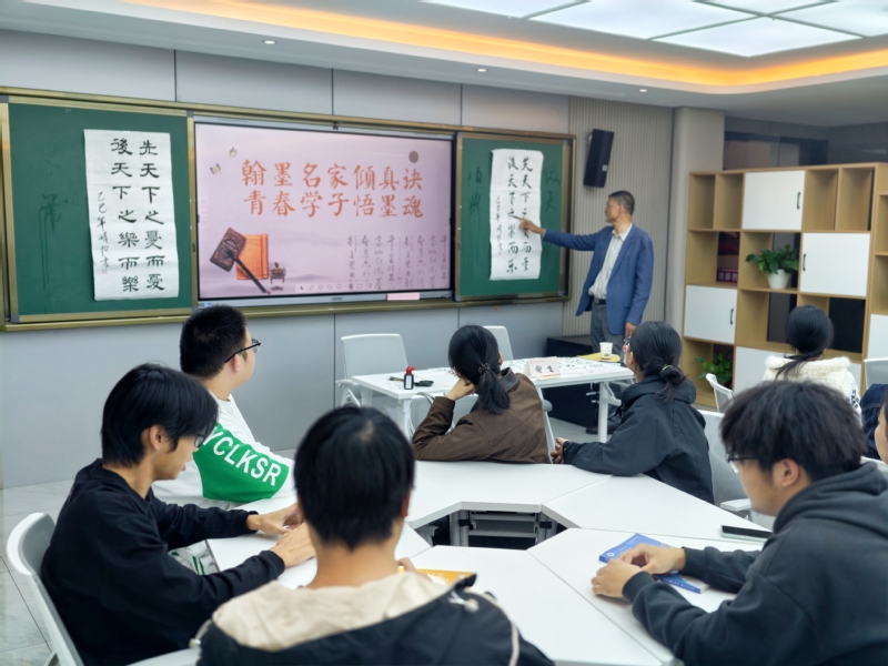 10月31日,数字商务学院在“一站式”学生社区举办“翰墨名家倾真诀,青春学子悟墨魂”书法指导活动。活动特邀数字商务学院退休教师、书法家谢飞,为书法爱好者和家庭经济困难学生带来一场兼具艺术性与思想性的书法实践课。