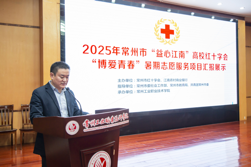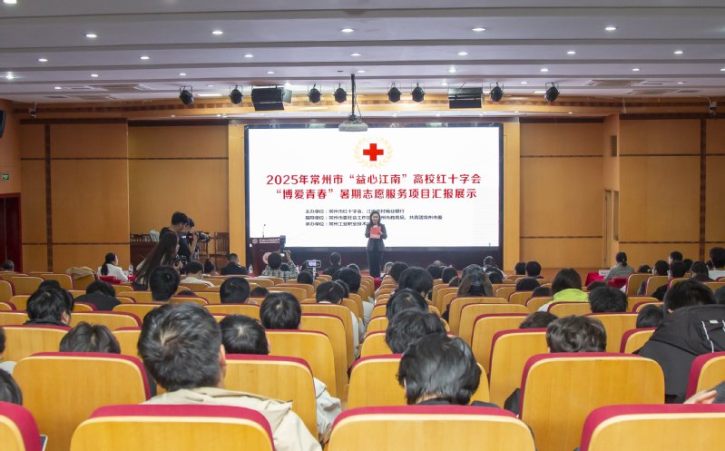 11月6日,2025年常州市“益心江南”高校红十字会“博爱青春”暑期志愿服务项目总结展示活动在我校举行。常州市红十字会党组书记、常务副会长戴亚东,我校党委副书记吴丽云,江南农村商业银行工会副主席殷锡峰,常州市红十字会党组成员、副会长郑跃进,市委社工部、市教育局、团市委、市红会等相关处室负责人,以及各高校红十字会项目负责老师、大学生志愿者、学生代表共200余人参加活动。