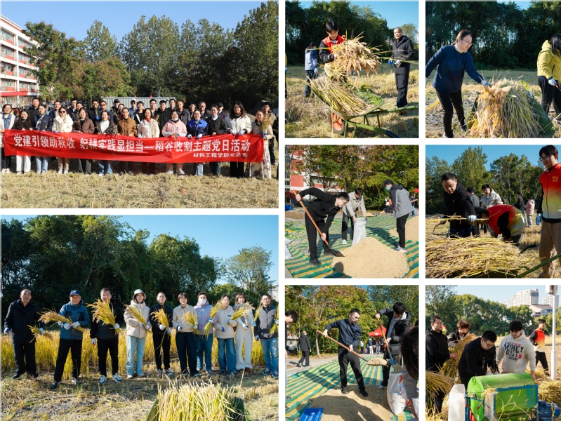 11月19日,材料工程学院党总支联合机关党总支第六党支部在能碳一体化新质农业示范基地开展“党建引领助秋收 躬耕实践显担当”稻谷收割主题党日活动,以实际行动助力粮食生产,强化劳动精神与服务意识。校党委副书记吴丽云出席活动。