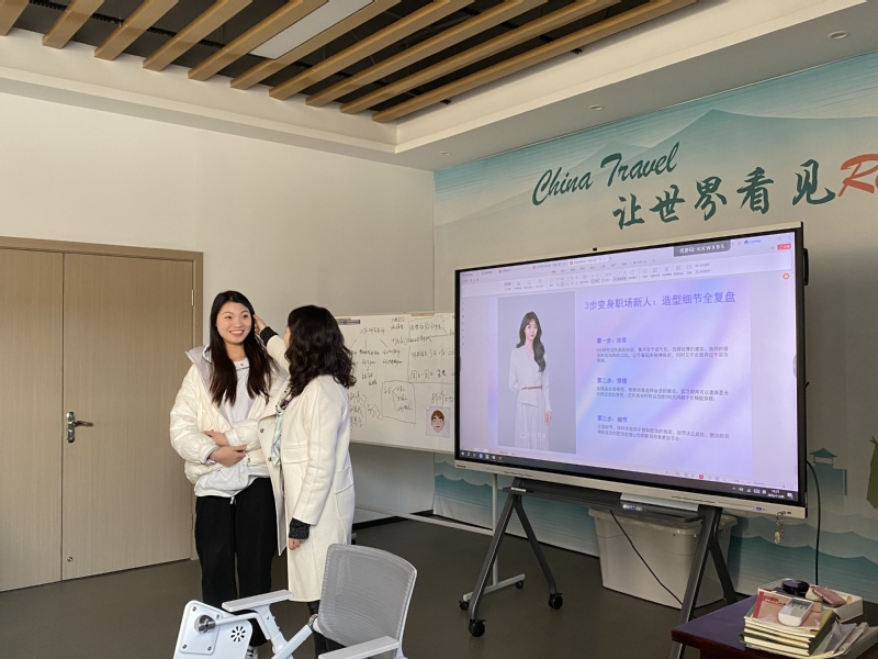 职业指导赋新能,实战模拟强本领。活动期间,多位校企导师带来干货满满的职业培训课程。天福志愿服务中心主任蒋春牵头开展“她技能”求职训练营,结合自身经验开展技巧讲解与案例分析,引导学生树立正确求职心态;常州纺织服装职业技术学院副教授张安凤的“职业形象赋能营”课程,从职场妆容到穿搭搭配构建完整形象管理体系,通过技巧讲解与实战模拟,帮助学生打造专业职业形象;上海壹树健康科技有限公司事业部总经理王芳系统讲解“角色转换与专业成长”,并聚焦从面试到择业的全流程,通过技巧拆解、案例分析与实战模拟,全方位提升学生求职和就业竞争力。