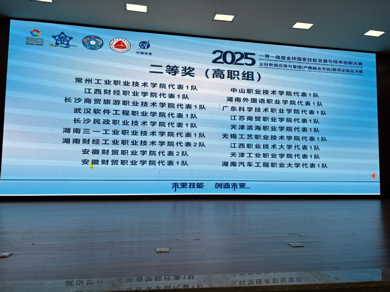 11月28-30日,2025“一带一路”暨金砖国家技能发展与技术创新大赛之业财数据应用与管理(产教融合方向)赛项全国总决赛在湖南落幕。我校数字商务学院大数据与会计专业团队凭借扎实的专业功底、默契的团队协作和出色的实战能力,从众多参赛队伍中脱颖而出,斩获二等奖第一名的优异成绩,指导老师姚少雯、李晶荣获“优秀指导教师”称号,学校获评“优秀组织奖”。