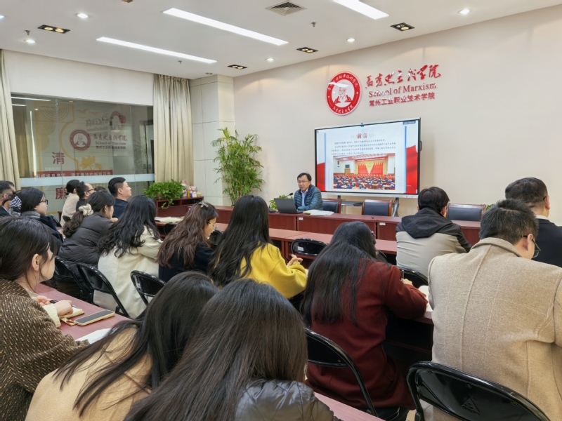 11月26日,马克思主义学院党总支举行学习贯彻党的二十届四中全会精神宣讲报告会。学院党总支副书记李飞以“深学笃行党的二十届四中全会精神 在推进马克思主义学院高质量发展中展现新作为”为题,为全院教师作了一场内容丰富、思想深刻的专题宣讲。