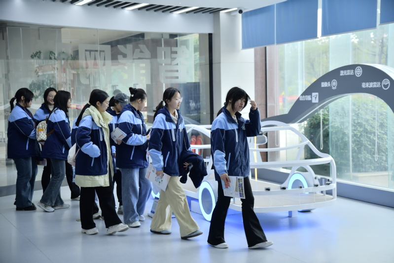 随后,在我校专业教师的引导下,同学们分组走进百度智能网联创新示范基地、理想汽车产业学院实训基地及民航客舱实训中心。在各实训场地,同学们近距离观摩先进教学设备,沉浸式体验理想汽车维护、无人驾驶技术应用、飞机机舱运行与维护等实践课程,亲身感受理论与实践结合的教学模式,在实践探索中开阔了学术视野、点燃了专业兴趣。