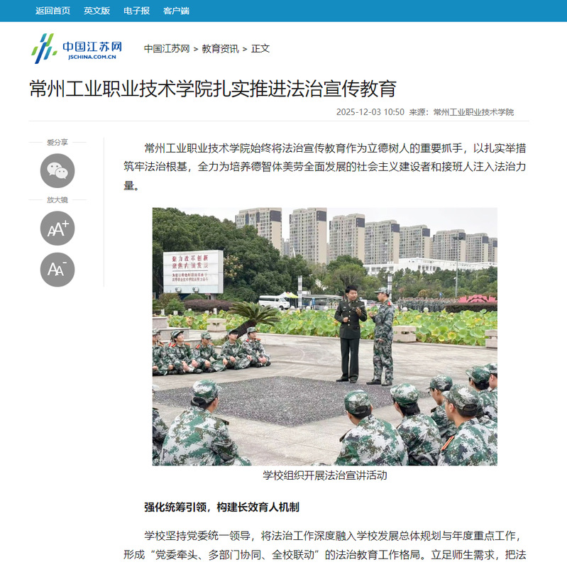中国江苏网:常州工业职业技术学院扎实推进法治宣传教育