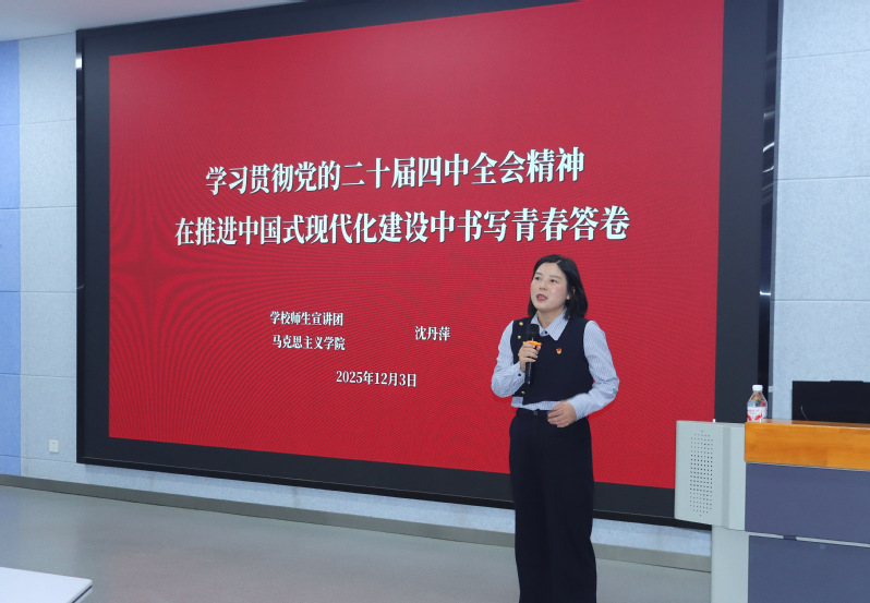 12月3日,材料工程学院邀请马克思主义学院教师沈丹萍,为学院青年学子开展了一场主题鲜明、内容丰富的党的二十届四中全会精神宣讲会。