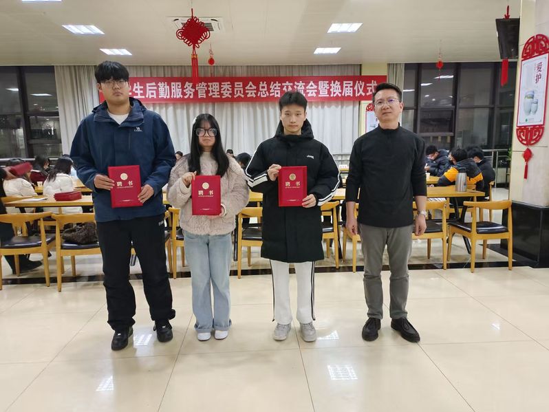 在随后举行的换届仪式上,基建维修科科长谢青春宣读了新一届后管会成员聘任名单,与会人员为新一届委员会主席团及部门成员颁发聘书。新一届后管会主席朱雨桐同学作表态发言。他表示,将带领全体成员继承优良传统,进一步强化责任意识与服务意识,“以学生需求为导向、以监督提质为目标”,持续聚焦学生急难愁盼问题,创新监督方式,提升工作效能,努力成为后勤服务的“监督员”、学生需求的“代言人”、文明校园的“建设者”。