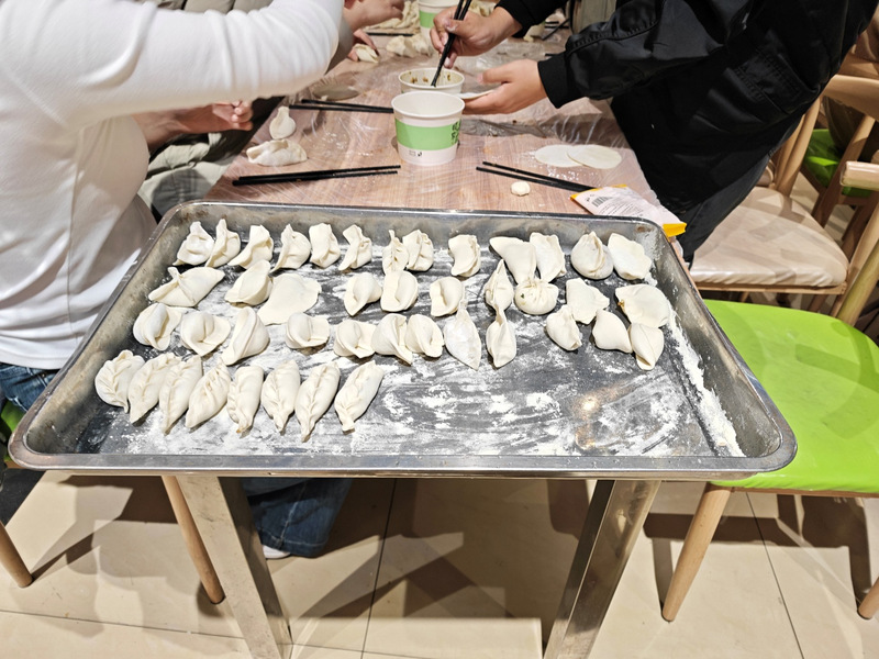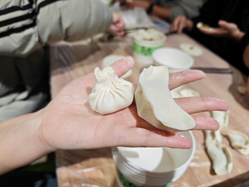 “冬至大如年,人间小团圆”,饺子作为冬至标志性美食,成为本次活动的核心载体。活动打破传统形制,将汉服元素与创意巧妙融合:饺子形状创意呈现月牙、元宝、梅花等造型,馅料亦兼顾经典与创新,现场气氛热烈。