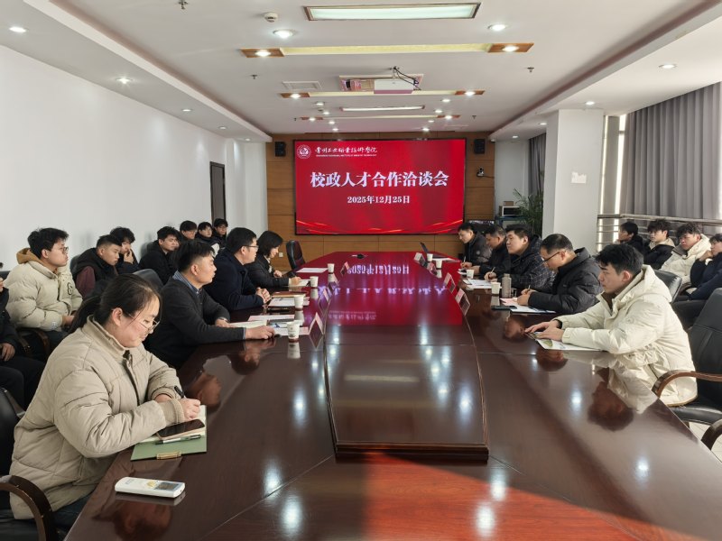 12月25日,沭阳县委组织部、县人社局、县人才中心一行来我校考察调研,政校双方围绕人才共育、产业对接、学生就业等议题开展深入交流。我校招生就业处处长柏铁山、材料工程学院党总支书记嵇天培参加座谈会。会议由招生就业处副处长施兴主持。