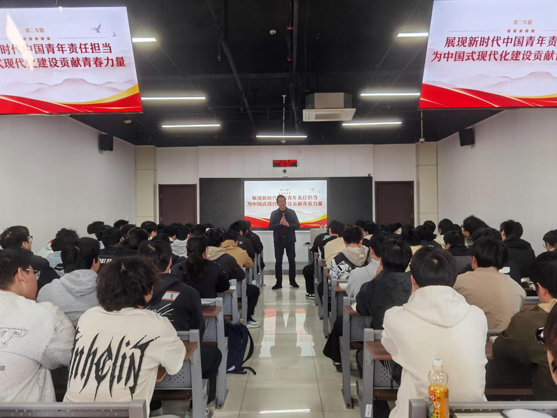 11月13日,党委委员、宣传部部长季华以“展现新时代中国青年责任担当 为中国式现代化建设贡献青春力量”为主题,为2024级机械电子工程、智能制造工程专业的学生讲授了一堂专题思政课。季华通过南开大学新能源电池教师团队等青年榜样故事,向学生展示了不同领域的青年如何以行动诠释责任担当,引导学生思考如何将个人才智融入国家发展大局。季华强调,中国正处在中华民族伟大复兴的关键时期,这是一个机遇与挑战并存、活力与压力共生的激荡岁月。当代青年既要胸怀“国之大者”,也要从身边小事做起,在实践中锤炼担当的宽肩膀和成事的真本领。