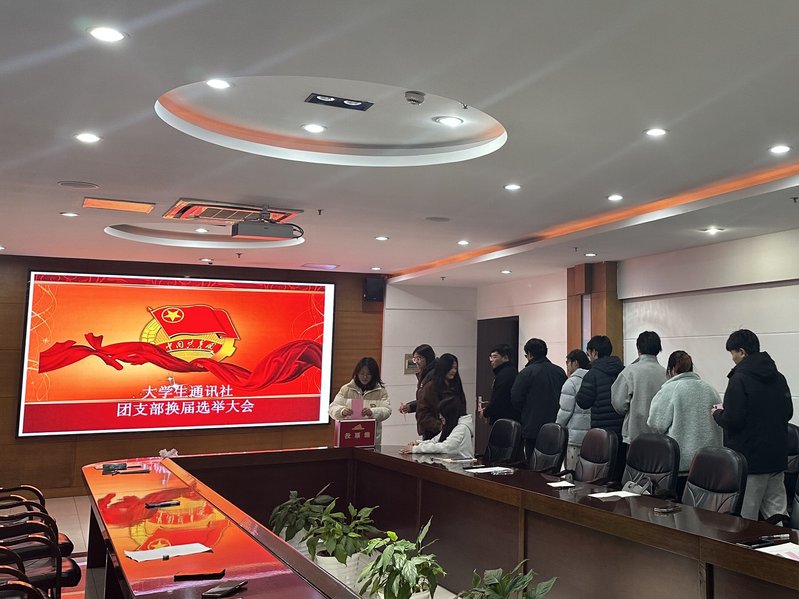 12月29日,大学生通讯社功能型团支部举行换届选举大会。本次大会严格遵循《中国共产主义青年团章程》及基层团组织选举相关规定,旨在进一步加强大学生通讯社功能型团支部的组织建设,充分发挥基层团组织的战斗堡垒作用,凝聚青年力量、激发组织活力,选举产生一批政治坚定、能力突出、作风优良的团支部委员,为社团共青团工作的高质量发展注入新动能。