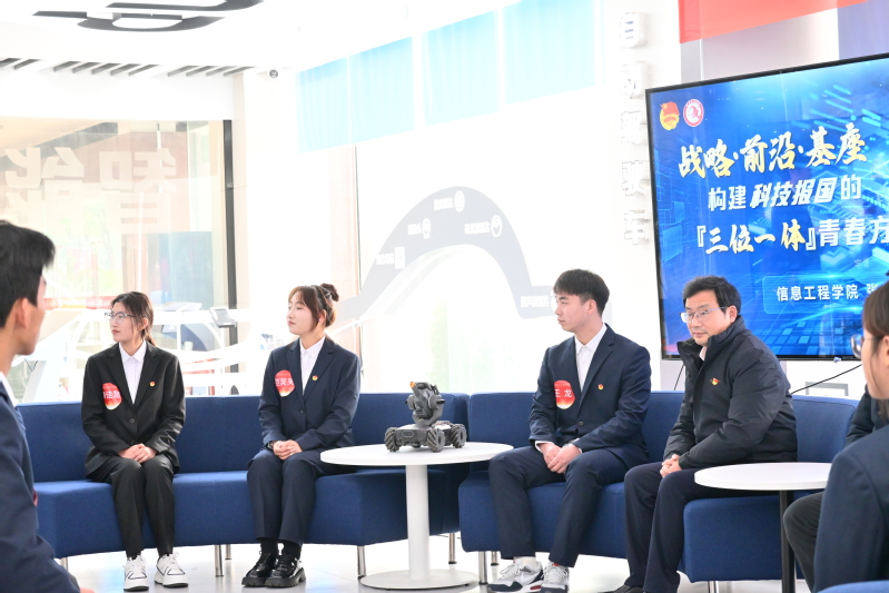 1月4日,信息工程学院鸿鹄团支部以“从‘代码战壕’到‘文明大厦’——新时代青年的科技使命与回答”为主题的“一月一示范”主题团课在百度智能网联基地举行。校党委委员、副校长檀祝平参与活动并寄语团员青年。