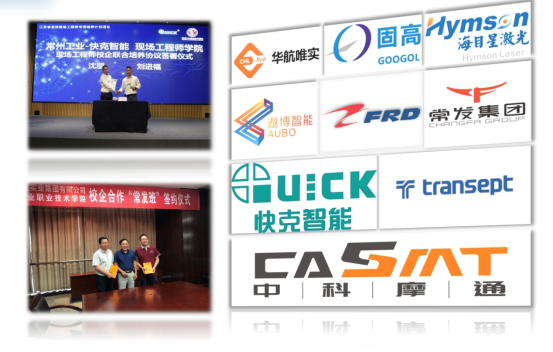 与常发集团、快克智能、华航唯实、遨博(江苏)机器人、飞亚达(江苏)、中科摩通等国内知名企业通过现代学徒制、订单培养、产业学院等途径,实现校企协同育人。