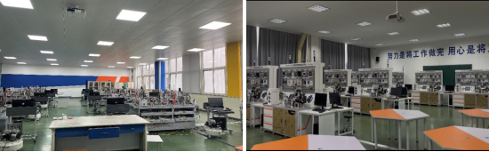 为了培养我们过硬的实践技能,学校为专业群建有中央财政支持机电一体化实训基地、教育部工业机器人应用人才中心、江苏省现代装备控制实训基地、江苏省产教融合实训基地(智能制造生产线实训基地)、智能制造工程中心等实训基地,与国内外工控名企(ABB、三菱、西门子、台达、安川、华航唯实、康尼、固高等)展开个性化合作,共建技术服务中心、培训中心、工程中心等。