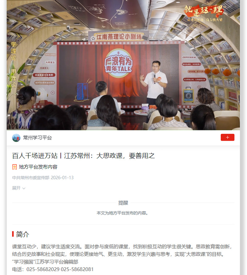 学习强国:百人千场进万站丨江苏常州:大思政课,要善用之