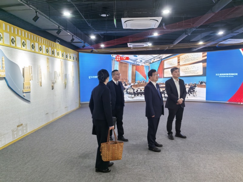 签约仪式后,在苏豪控股集团相关领导的陪同下,席海涛一行前往苏豪江苏中亚中心参观考察,深入了解平台建设运营情况与合作成果。据悉,苏豪江苏中亚中心已升级为中国—中亚贸易畅通合作平台,是第二届中国—中亚峰会期间揭牌落户江苏的国家级经贸合作平台,目前已布局贸易服务、文化展示、技术交流、丝路电商、产品展销等五大功能板块,集聚了一大批国内外优质企业,累计举办各类经贸合作对接活动20余场,成为中亚五国在华政商资源的重要集聚地。