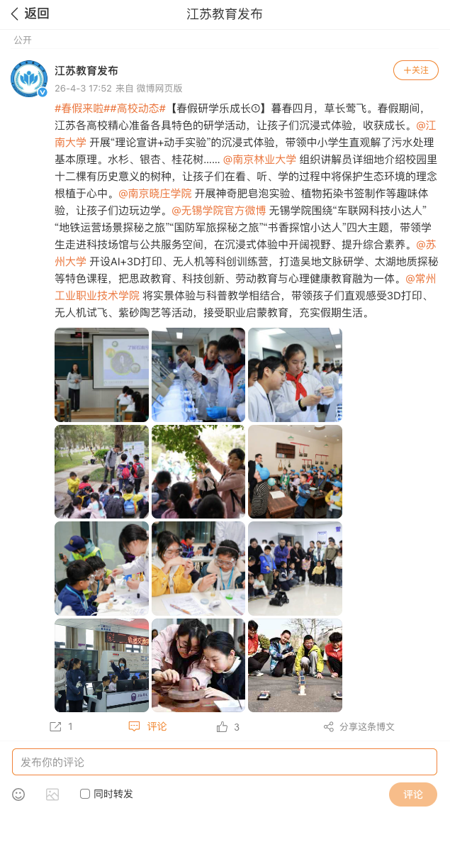 江苏教育发布:#春假来啦##高校动态#【春假研学乐成长①】