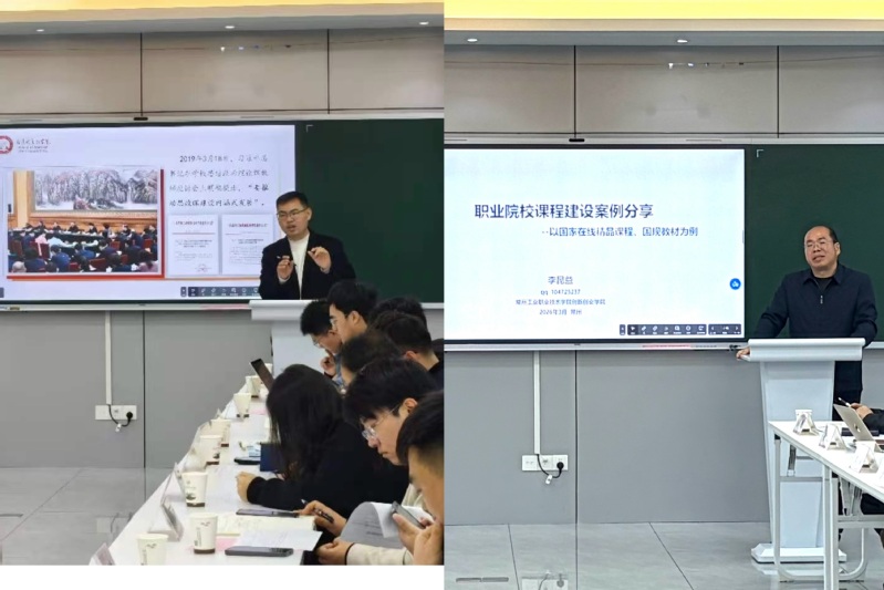创新创业学院院长李昆益以“职业院校课程建设案例分享——以国家在线精品课程、国规教材为例”为题,介绍了我校在“双创”相关课程建设与教材开发方面的丰硕成果,强调课程建设必须对接专业需求、服务学生成长,并指出集体备课是推动课程质量提升、打造“金课”“金教材”的重要抓手。