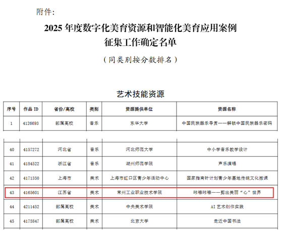 本次活动由教育部体育卫生与艺术教育司组织开展,旨在深入推进学校美育浸润行动,加快人工智能等数字技术在美育领域的创新应用。经学校申报、省厅推荐报送、专家论证等环节,最终确定艺术技能资源186门、艺术活动资源205个、智能化美育应用案例157个。