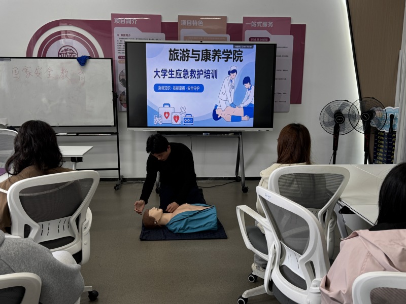 聚焦校园安全应急需求,学院联合专业医护团队,面向全体大学生开展应急救护培训,将国家安全中的社会安全、公共卫生安全理念与实操技能相结合,切实提升学生应急处置能力。培训现场,医护讲师围绕心肺复苏(CPR)、止血包扎、常见急症应对等核心内容,采用“理论讲解+现场演示+实操演练”的方式,详细拆解每一个操作步骤,强调应急救护的关键要点和注意事项。