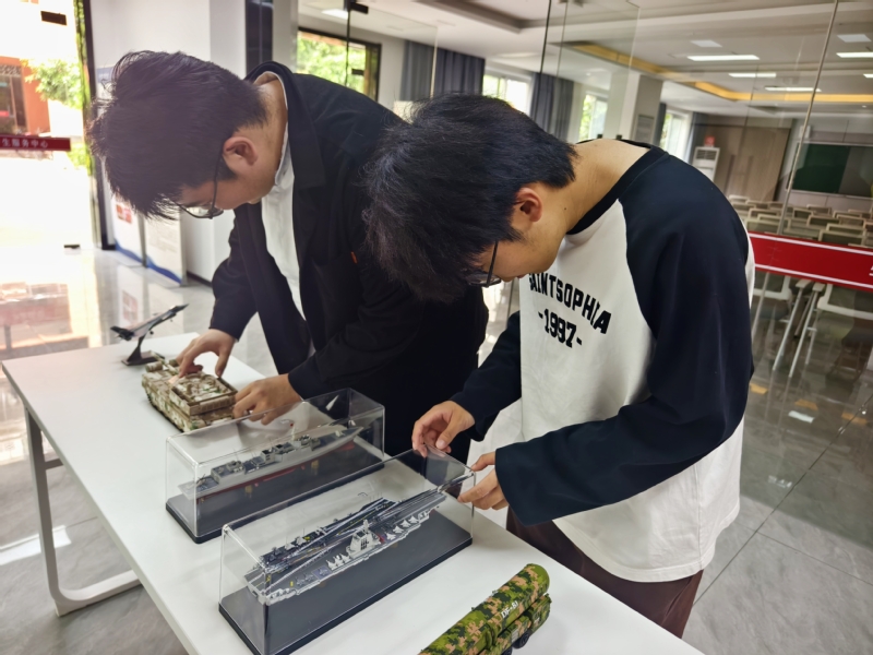 以“入脑”强认知,创新形式筑牢思想根基。学院各班级开展“国家安全与我”主题班会,打破传统说教模式,创新采用“地图知识答题闯关”等趣味形式,让国家安全知识入脑入心。在学院“一站式”学生社区,开设“大国重器与国家安全”专题展览,展出“歼35”“福建舰”等模型,吸引同学们观看。