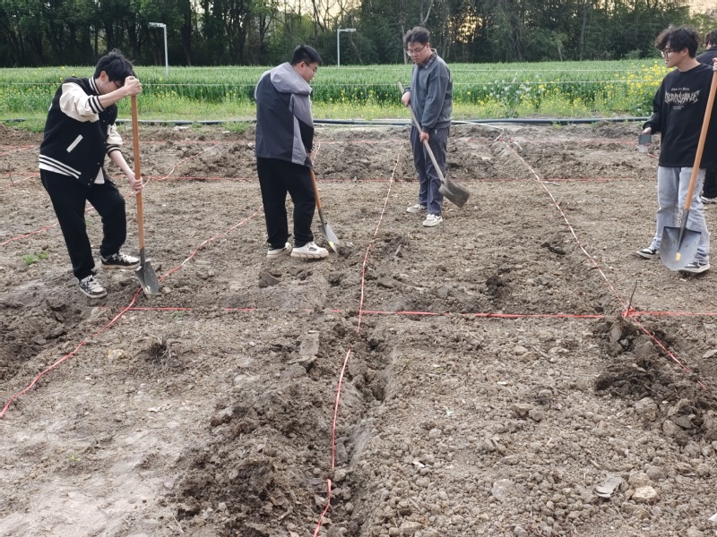理论学习结束后,同学们化身为“新农人”,积极参与纳米铁肥实验田的劳动实践。大家分工协作、有条不紊,依次完成实验田的除草、起垄、施肥、种苗、浇水等一系列农事操作,亲身感受农业生产的全过程,在动手实践中体会劳动的意义,也进一步理解纳米材料在农业种植中的应用原理。