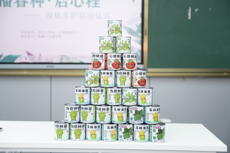 活动现场,同学们以“心愿罐”的形式领取绿植种子,“心想柿成”“为你种草”等充满巧思的主题绿植罐,既承载着春日的美好期许,也为活动增添了趣味与温度。在老师的引导下,同学们共同搭建起绿植塔,象征着生命的蓬勃生长与集体的温暖联结。同学们认真挑选、有序领取,将属于自己的“春日小生命”轻轻捧在手心,也将一份对成长的期待与守护的责任悄然藏进心底。