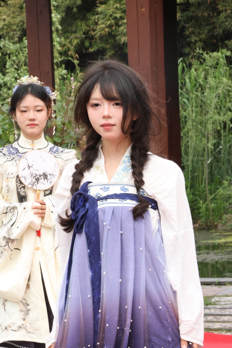 活动高潮为“汉服形制展示·礼乐走秀”。同学们身着齐胸襦裙、圆领袍、宋制褙子等不同朝代传统服饰,依次登场,展示中华服饰之美与礼仪之韵。典雅的服饰、从容的仪态与春日景色相互映衬,让在场师生沉浸式感受中华传统文化的独特魅力。