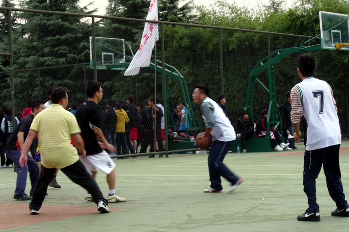 下午3点30分,随着一声哨响,篮球友谊赛正式开始。球场周围也围满了来加油助威的老师和同学,赛场气氛十分热烈。美妙的上篮、精准的中投、漂亮的抢断、迅猛的快攻、完美的过人、严密的防守、默契的配合,一切在篮球场上该有的元素层出不穷,一切在篮球场上该有的精神一一涌现,场面扣人心弦,令人拍手叫好。