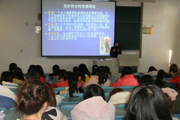 作为新时代的女性,不光要重视外在的美化和修饰,内在心灵的修炼和提升也同样重要,时代对女性提出了更高的要求,内外兼修,提高自身综合素质,全面增强女大学生的自信心显得尤为重要。在三八妇女节到来之际,艺术系特意邀请到了校心理健康教育中心主任胡剑虹教授为全系女生做了主题为“女性特征与女性自立”的心理健康知识讲座,为全系女生送上了一份精神大餐。