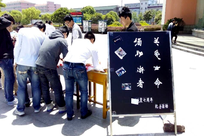 为深切缅怀在“5•12”汶川大地震中罹难的生命,综合加强学生在突发自然灾害中的自我保护意识,轻工工程系团委于5月12日开展“5•12”七周年纪念活动。轻工工程系分团委书记缪双明、辅导员徐新巧、杨璐以及部分团学代表等出席现场。