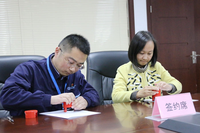 为加强高校与企业之间的交流与合作,充分发挥高校人才资源优势,共享校企文化建设资源,12月1日下午,共青团常州轻工职业技术学院委员会联合共青团北汽新能源汽车常州有限公司委员会举行校企团建共建签约仪式。学院党委副书记毛伯民、武进团区委副书记赵丽君、武进国家高新区团工委书记金亚明、北汽新能源汽车常州基地党委副书记万金朋一席共同参加了签约揭牌仪式。常州轻工职业技术学院团委副书记嵇天培与北汽新能源汽车常州基地团委副书记张蕊签订了校企团建共建协议书。会议由张蕊主持。