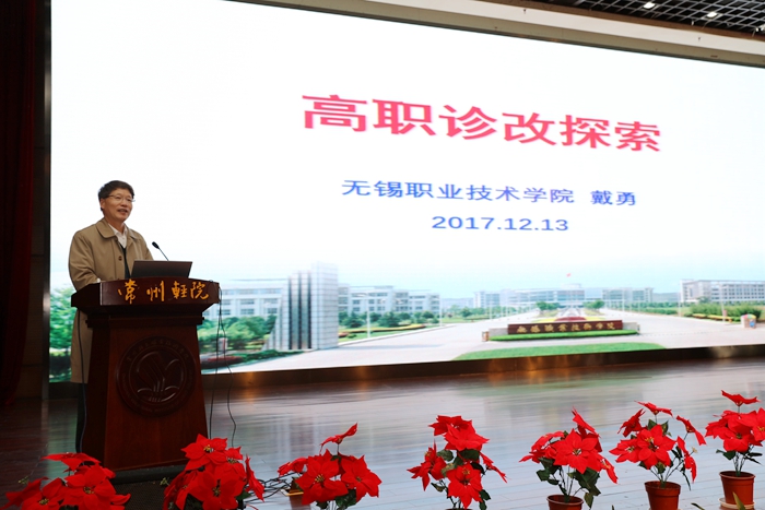 为深入贯彻落实教育部和江苏省关于高职院校内部质量保证体系诊断与改进工作要求,学习借鉴全国诊改试点院校的经验与做法,促进我院常态化开展人才培养质量自主诊断与改进工作,12月13日下午,特邀无锡职业技术学院原院长戴勇教授来我院作《高职诊改探索》专题报告。院长杨劲松主持会议,学院领导、副科级以上干部、全体教师共同聆听了报告。