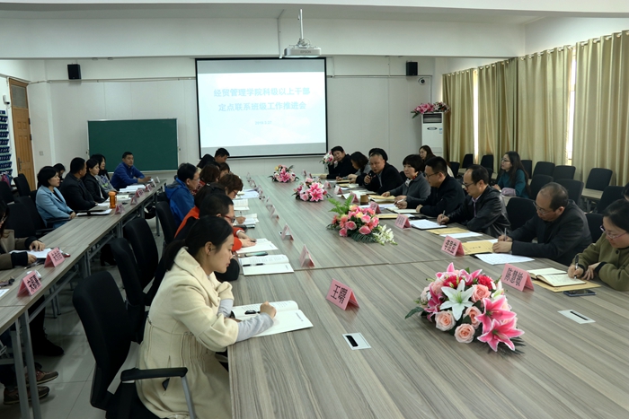 为进一步加强和改进学生思想政治工作,贯彻落实《常州工业职业技术学院科级以上干部定点联系班级制度》,3月27日,经贸管理学院召开科级以上干部定点联系班级工作推进会。学校党委副书记毛伯民、经管学院党总支书记杨海清、副院长孙洁等21名科级以上干部和相关班主任参加会议。此次会议由经管学院党总支副书记汪洋主持。