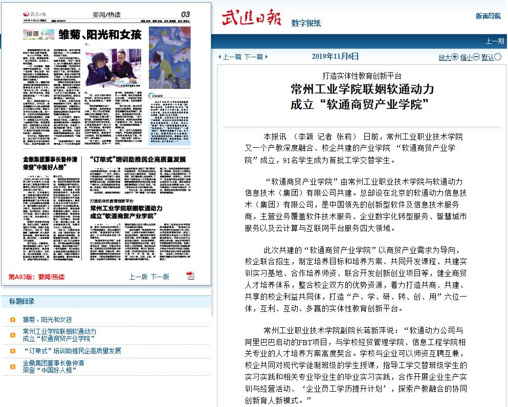 武进日报-常州工业学院联姻软通动力 成立“软通商贸产业学院”